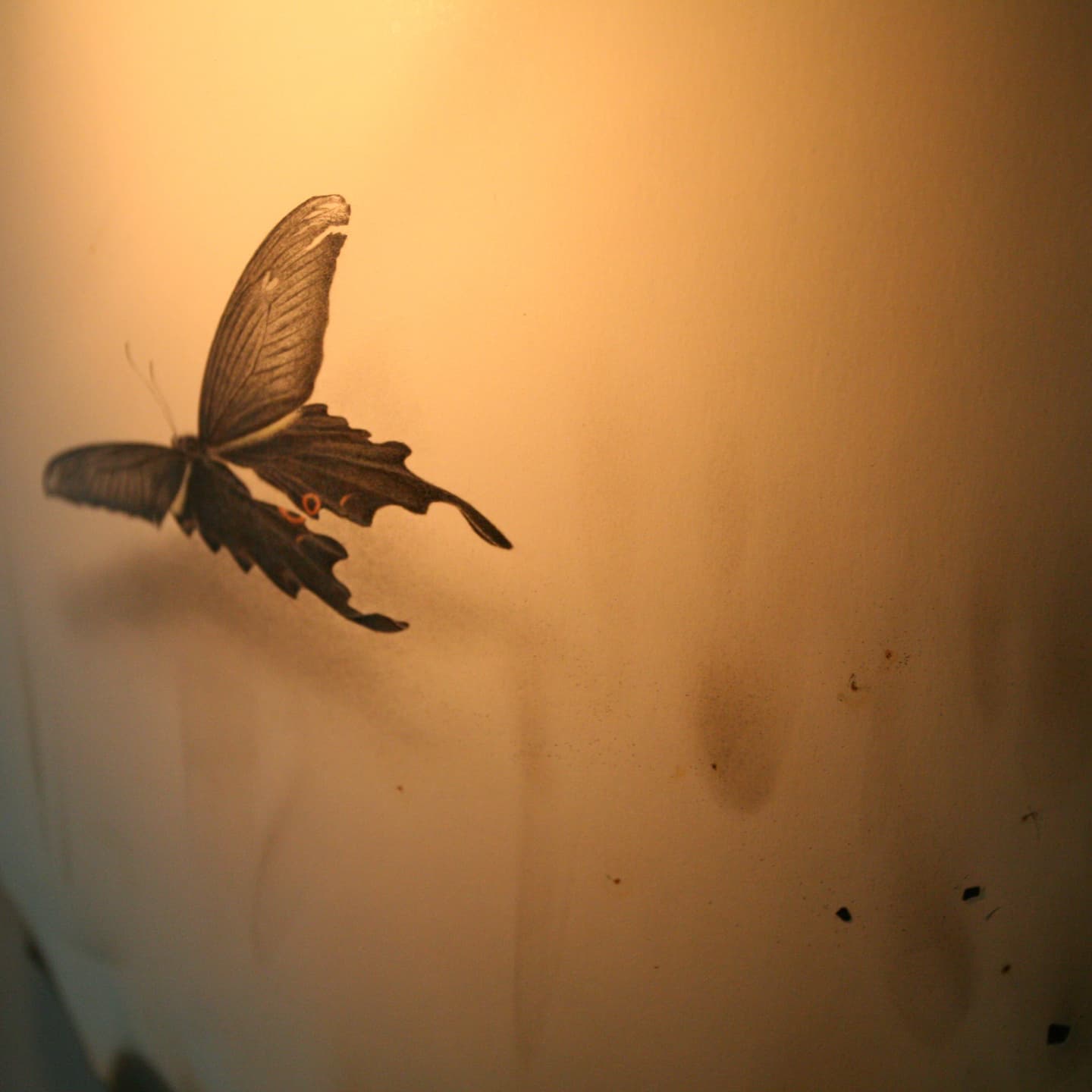 ◾️残炎|Remaining Flame|2009|紙、鉛筆、水彩、火、鉄、廃棄物|Pencil on paper,watercolor,soot,iron,waete matter,etc.